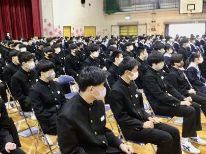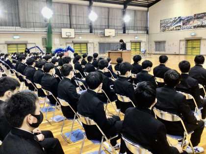 同窓会長様をお呼びし、朝日丘中学校同窓会入会式を行いました。