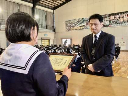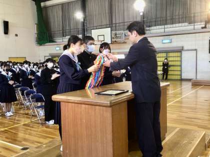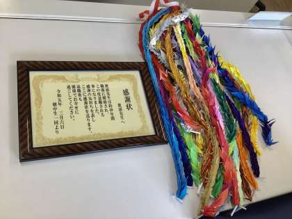 教頭先生に向けて、3年生、2年生が感謝の気持ちを形で表巣ことができました。