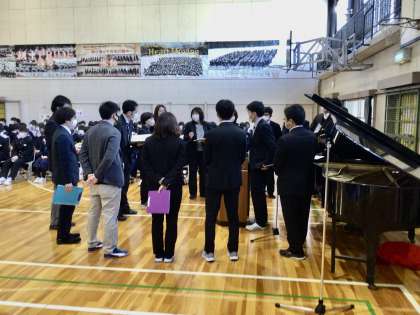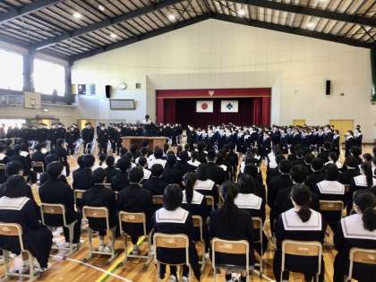 最後に校歌を斉唱したのち、退場をします。退場の場面では、写真にあるように保護者の皆様の席へ向かって、退場をします。