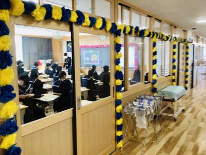 3年4組、5組の様子です。5組は歌を歌っています。