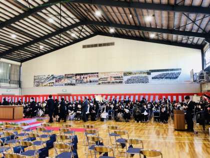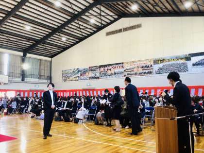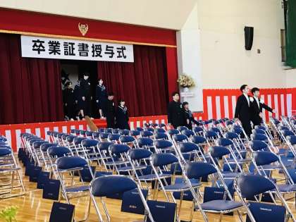 保護者の方は全て入場され、来賓も入場し、3年1組から入場を開始しました。