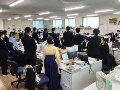 3年部の教職員は、他学年の先生方に支えられ、感謝の気持ちを表しています。