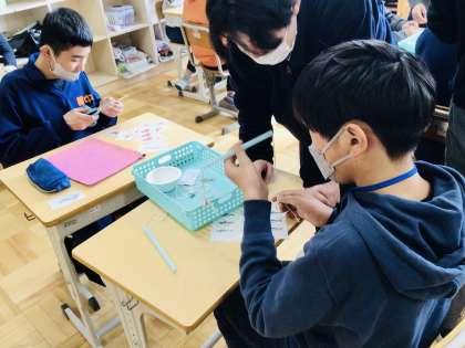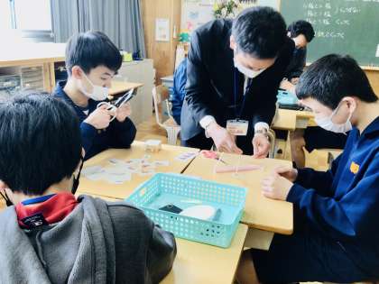 3/8(水)小学生を迎えて1、2、3学級 公開日 2023/03/08 更新日 2023/03/08 各学年から 理科の先生や1、2、3学級の先生も一緒になって、生徒たちと活動をしていました。 特別支援学級