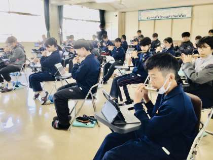 篠笛の説明を聞いてから、実践をしました。