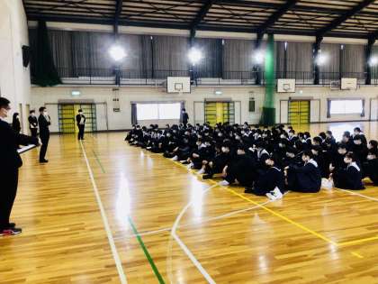 3/9(木)3年生主任の話 公開日 2023/03/09 更新日 2023/03/09 各学年から 合格証を皆さんに手渡す前に、3年生主任の富田先生の話がありました。 卒業式の素晴らしかったという話の後、高校へ行っても頑張れというエールを送っていました。 3年
