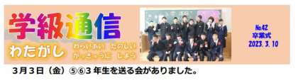 1,2,3学級通信最新号をお届けします 公開日 2023/03/10 更新日 2023/03/10 お知らせ 1,2,3学級通信最新号をお届けします。 ご覧ください。 ↓↓↓↓↓ ☆学級通信42 特別支援学級