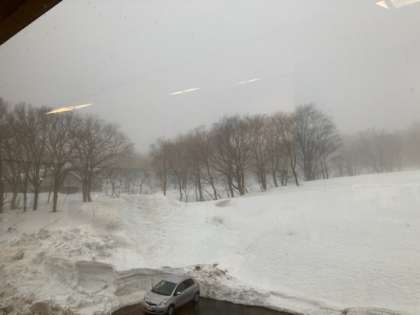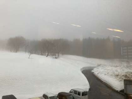 小雨が降っています。 途中から雪に変わり、その後晴れる予報です