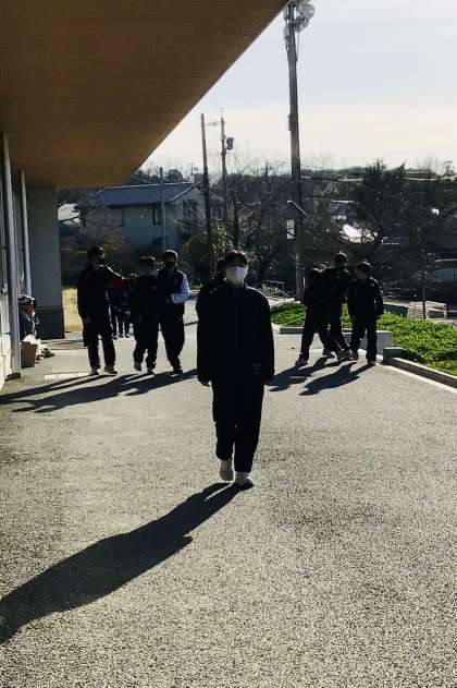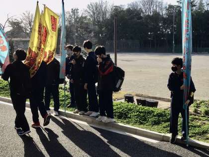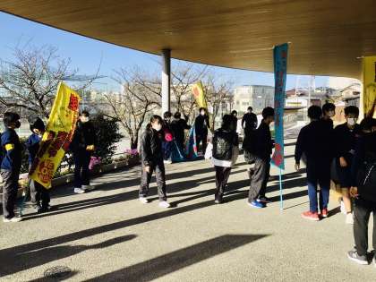 今日の挨拶運動を頑張っている1年生の生徒たち
