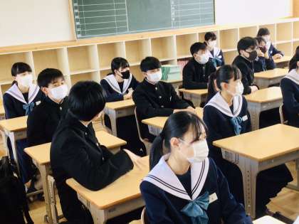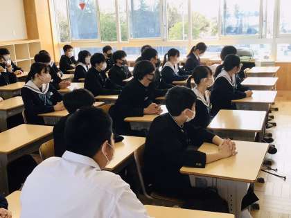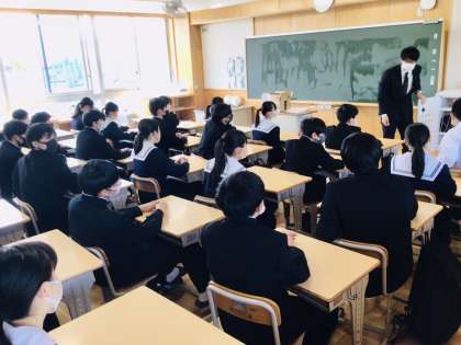 2年6組の様子 これから担任から廊下で、通知表を丁寧に渡していきます。