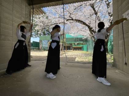 3/28(火)弓道部の練習と満開の桜 公開日 2023/03/28 更新日 2023/03/28 特別活動 今日の弓道部の練習している様子です 一年生が、袴と胴衣を初めて身につけました。 桜が綺麗で、思わず写真撮りました。 1年 部活動