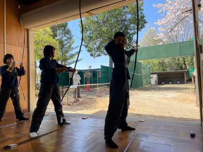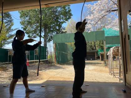 桜満開の中、3/29(水)の弓道部の部活動の様子です。 ご覧ください。皆、素敵な笑顔ですね。