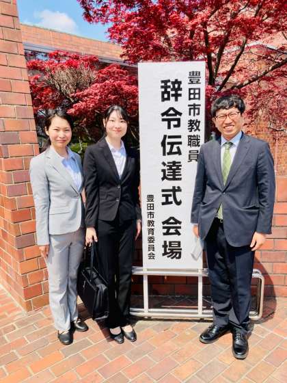 教頭先生と新任教師とともに豊田市の辞令伝達式に出席しました