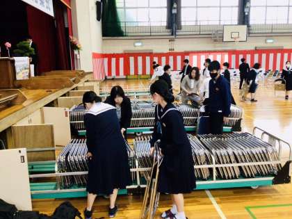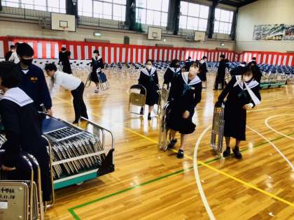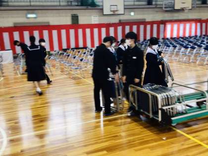 4/7(金)式後のボランティア片付け1 公開日 2023/04/07 更新日 2023/04/07 各学年から 式場の片付けが、3年生のボランティア、2年生の一部のボランティアの生徒たちが、活動に参加してくれました。