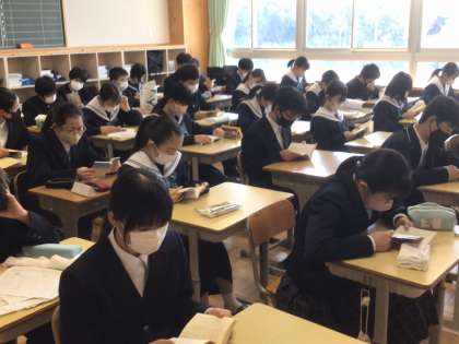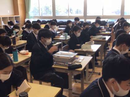 朝の1年生の様子です。 1年3組、4組、5組です。