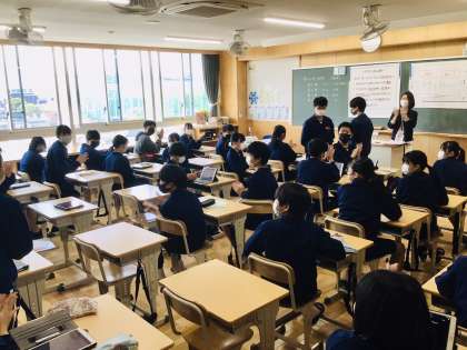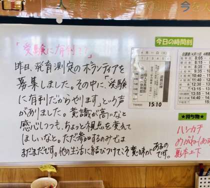 4組の学級活動の様子です。 拍手がわいています。 学年掲示板も紹介します。