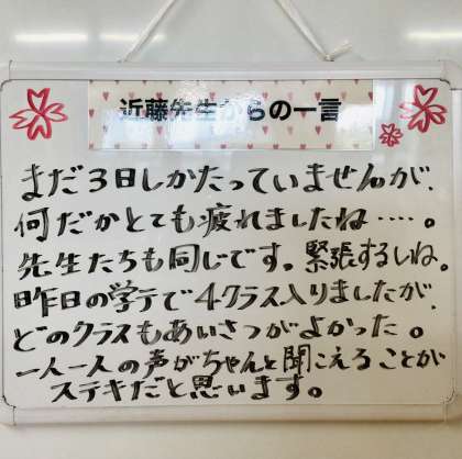4/12(水) 学年掲示板メッセージ 公開日 2023/04/12 更新日 2023/04/12 各学年から 学年掲示板を覗くと、主任の先生たちが、生徒たちに向けてのメッセージを送っています。 生徒の皆さんが目にするように・・・ 1年 2年 3年