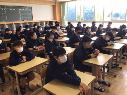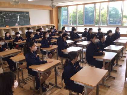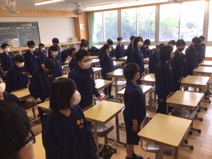 1年4組から6組の皆さんです。 今から、朝の会が始まります。