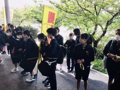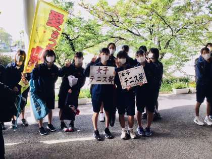 テニス部女子の朝の挨拶運動です。