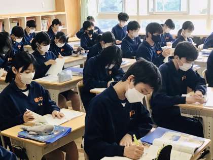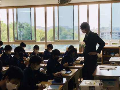 社会の福田先生が授業を展開されていました。 3年生です。頑張ります。