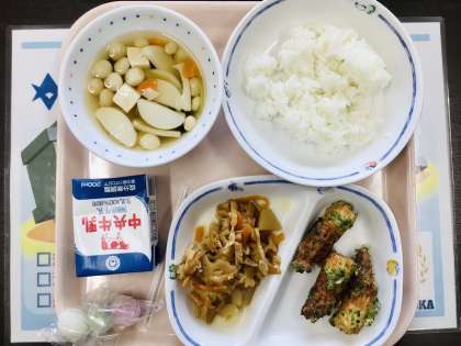 本日の給食は、揚げちくわと混ぜご飯でしたね。 美味しくいただいたことと思います。