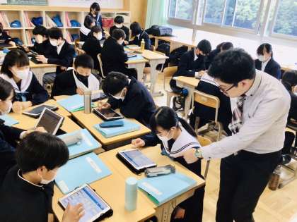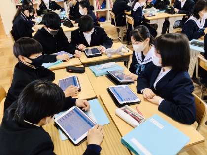 2年生も皆クラスで同じ題材で学習を進めています。 2年7組です。