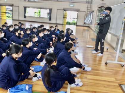4/18(火)17c、18C保健体育 公開日 2023/04/18 更新日 2023/04/18 各学年から 1年生の保健体育です。体育は、2クラス合同で行います。体育を行うときの約束を榊原先生から聞いています。これから運動が始まります。 1年