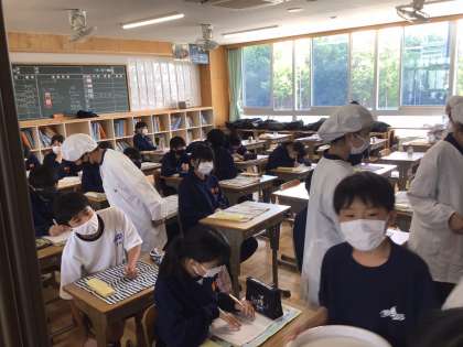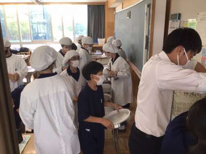 1年7組の給食準備の様子です。