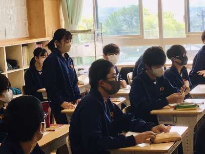 32C道徳の授業です。 自分の意見を述べることとても大切なことですね。