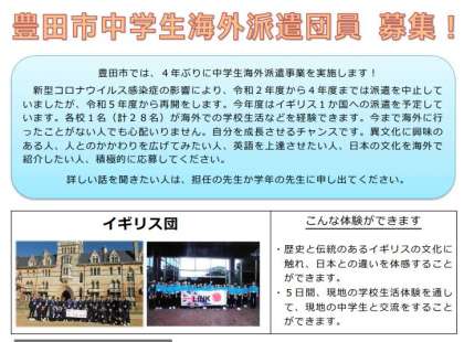 ★豊田市中学生海外派遣生徒の募集について