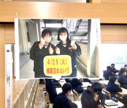 明日は、検尿の日です。廊下からこのようなものを見つけました。 31Cです。