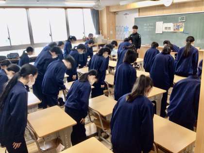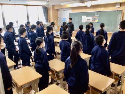 1年2組、1組です。1組は、挨拶の様子です。しっかりと揃っていますね。