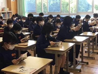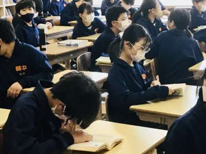 朝、静かな朝を迎えている1年生。読書をしている姿が見られました。