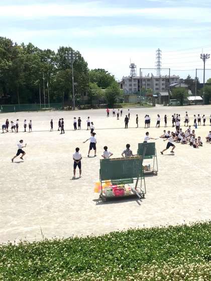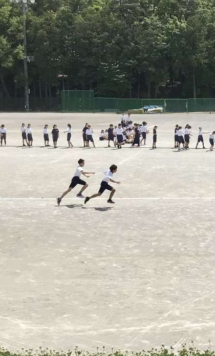 保健体育の全員リレー(朝中リレー)の練習の様子です。