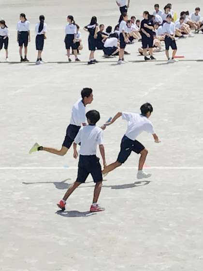 朝中リレーのバトンパスの様子