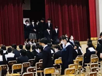 新入生歓迎会が始まりました。最初は、1年生の入場です。