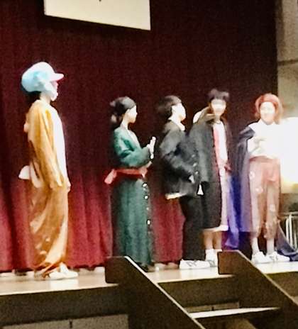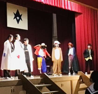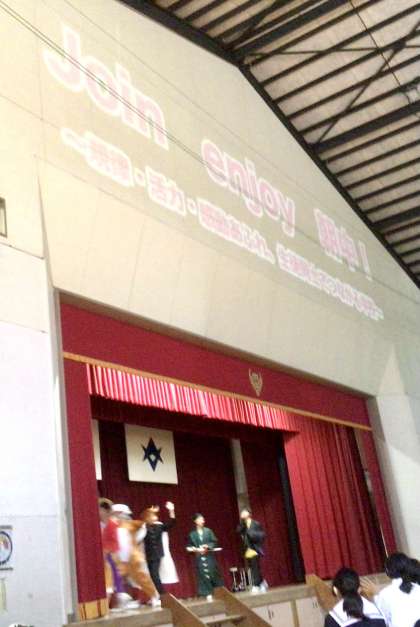 生徒会スローガンの発表の場面です。