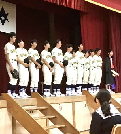 部活動紹介 野球部です。トップバッターを飾りました。