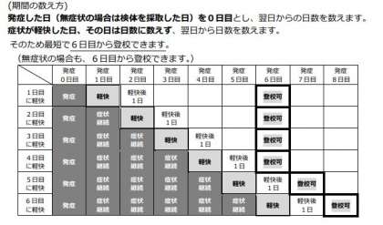 ※5月8日からは、同居ご家族が感染されても、お子さんは「濃厚接触者」に特定されません。また、外出等行動を制限されることもありません。 そのため、5月8日からは、お子さん自身に症状がない場合は、登校が可能です。その際は、7日目間のマスク着用にご協力をお願いします。症状があるなど感染が疑われる場合のみ、「出席停止」としますので、その場合は、登校は控え、学校にご連絡ください。その他、症状がなくても今まで通り学校を休ませたい場合については、同居のご家族の発症日を0日として5日間は「出席停止」としますので、学校までご相談ください。