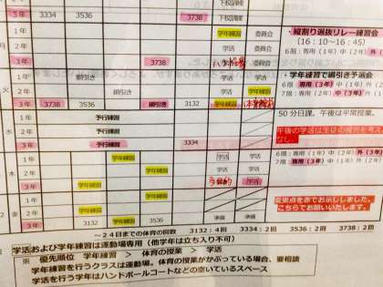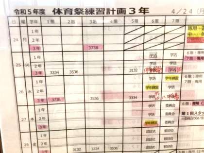 体育祭の練習計画は、学年ごとに計画的に進められています。