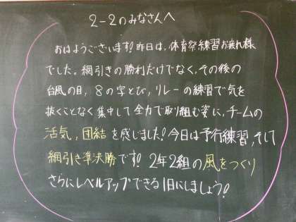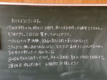 5/10(水)体育祭予行練習2年黒板メッセージ5