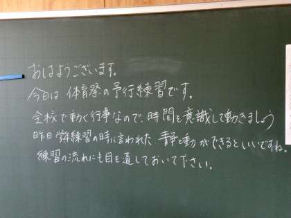 5/10(水)体育祭予行練習1年黒板メッセージ9