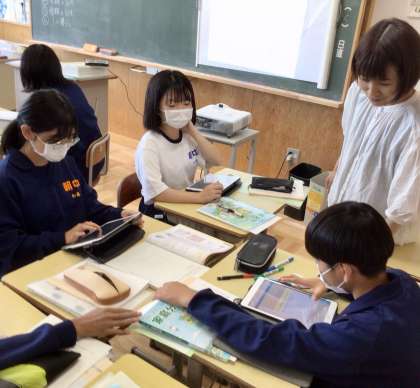 1年5組は、家庭科の授業です。