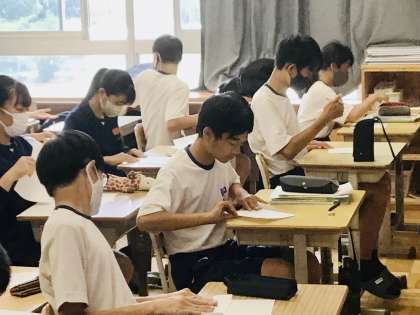 数学の授業です。テスト範囲まで後もうちょっと、頑張っています。