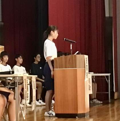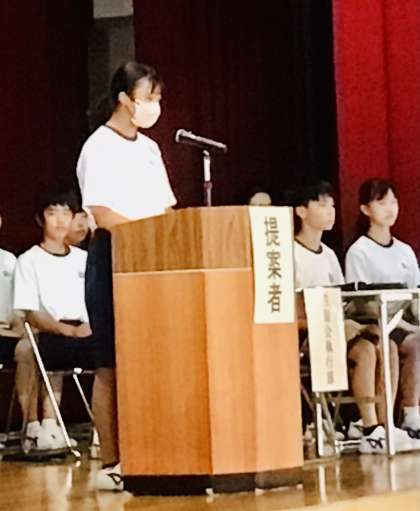 委員長からの提案をしたのち、生徒たちからの質問に対する答えを述べていきました。
