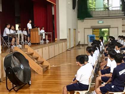 5/22(月) 令和5年度 生徒総会12 公開日 2023/05/22 更新日 2023/05/22 学校行事 写真は、閉会の言葉を生徒会副会長が話している場面です。 4年ぶりの一堂に会しての生徒総会が終わりました。 お疲れ様でした。 1年 2年 3年 特別支援学級 生徒会 委員会 行事