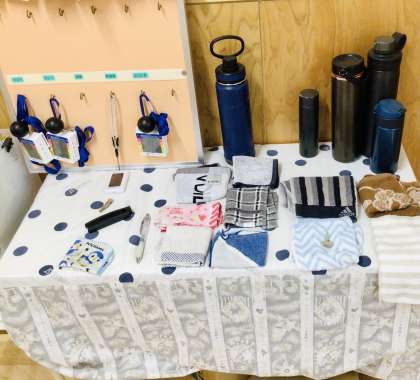 職員室前の落とし物がまだこれだけあります。ハンカチなど見覚えありませんか? 鍵も気になりますね。