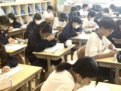 国語の授業では、単元テストを行っていました。 1年3組です。