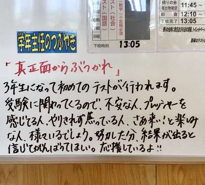 3年学年黒板メッセージと3年1組と2組です。 ご覧ください。