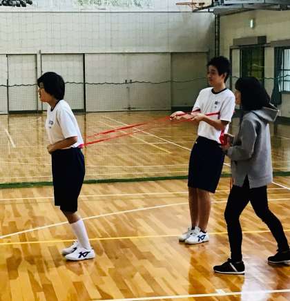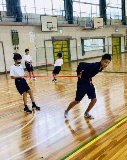 5/25(木)1、2、3、4学級リトミックを行いました3 公開日 2023/05/25 更新日 2023/05/25 各学年から 1、2、3、4学級の生徒たちは、2時間目にリトミックを行いました。リトミックとは、楽しく音楽と触れ合いながら、身体的、感覚的、知的にその子供たちが持っている潜在的な基礎能力を高める活動です。 生徒たちは、音楽に合わせて、リズム運動をしたり、写真のように体を使って、バランスをとったりしていました。 特別支援学級
