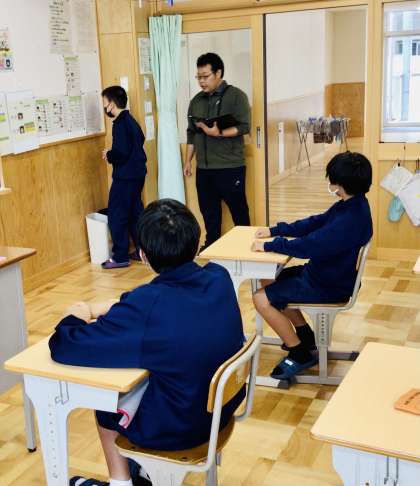 1、2、3、4学級の朝の会の様子です。